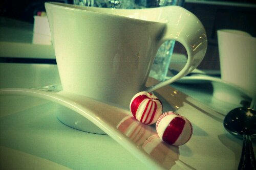 The coffee cups at the Miami Art Cafe had a very unique design, highly unusual to see in a coffee-deli-bar. The peppermint candy allowed me to use the extraordinary design more like a landscape and the reflections are just as dramatic as the coffee cup design. The tilted angles and the counter action of the camera, make this photos a little unnerving. Reminds me of a circus, where the artists are always a little off kilter between their act.